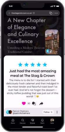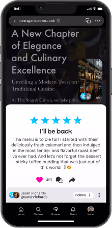 Upsell nibbles, wine, specials and more by bringing your menu to life with authentic customer content.
